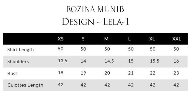 The model's shirt length is 53 and culottes length is 42.