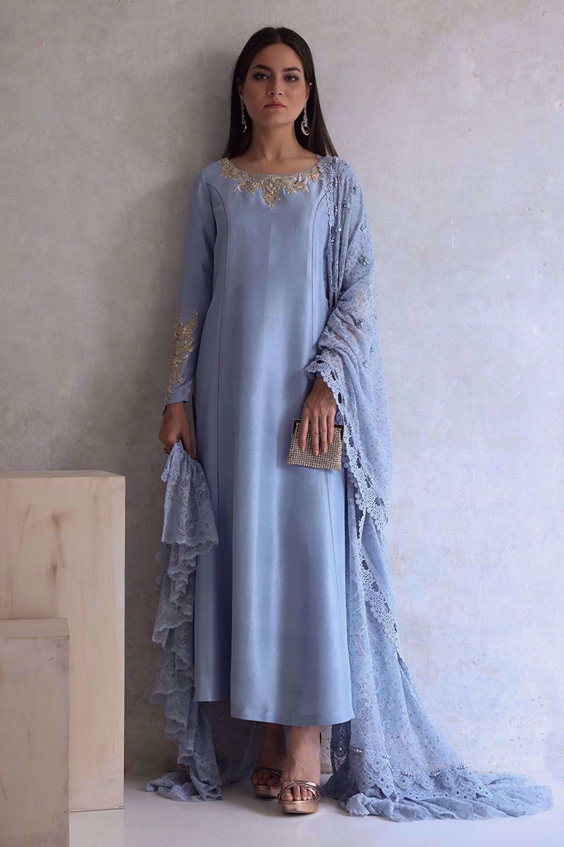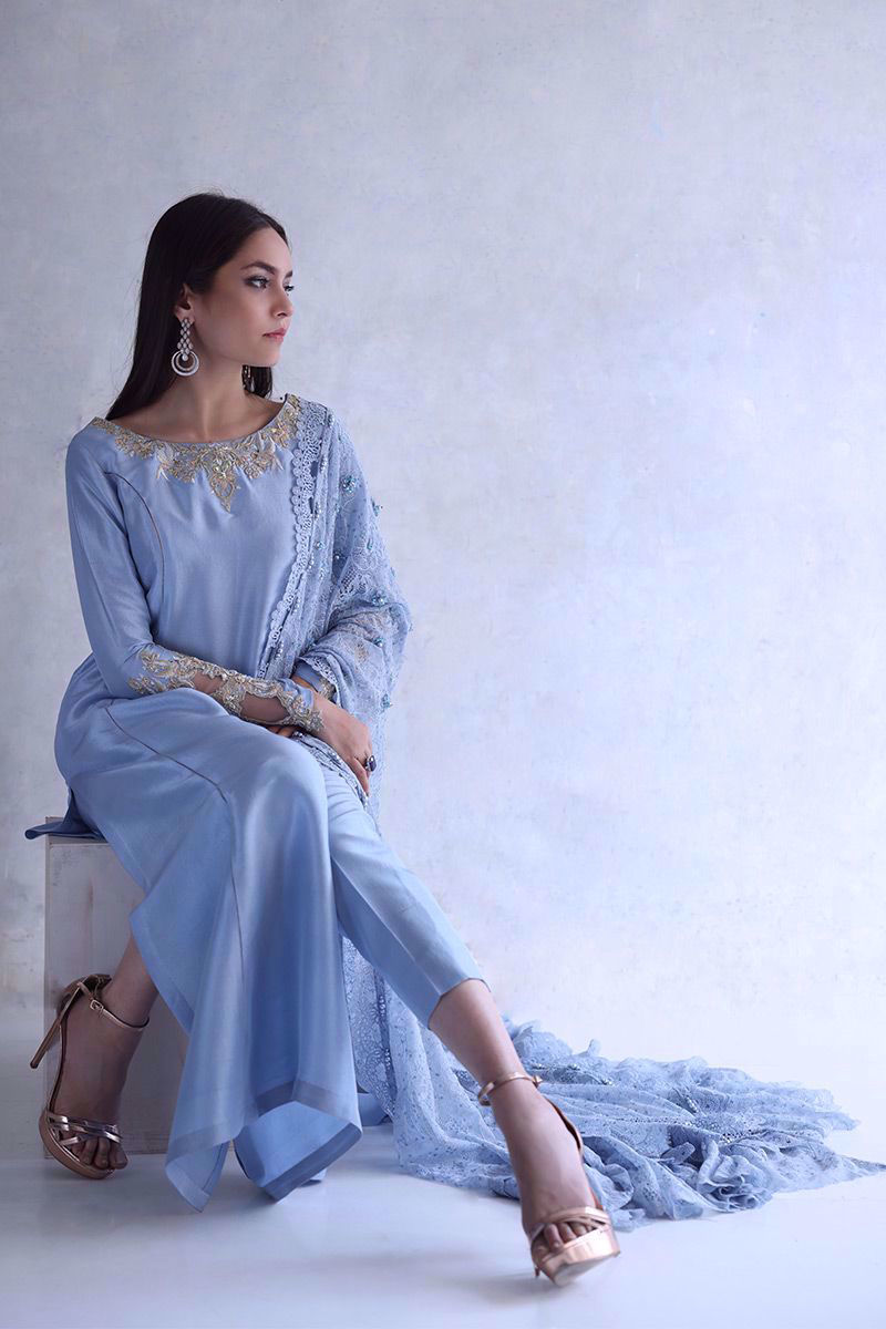 Color: Cashmere Blue Fabric: Raw Silk Work Details: Embellishment