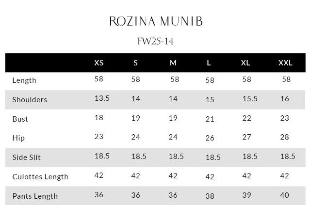 An elegant kaftan in rich magenta pure velvet, designed with side pockets for a contemporary touch. The piece features exquisite gold and silver zari embroidery accented with colored appliqué work, elevated by intricate handwork of sequins, cutdana, dabka, naqshi, tikki, and stones on the front, back, and sleeves. The gota balls delicately hanging from the sleeve edges add a playful yet sophisticated charm. Paired with cotton charmeuse culottes or pants, this ensemble beautifully merges modern design with timeless craftsmanship.
