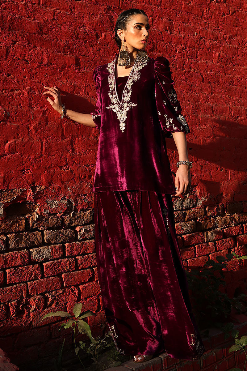 Color: Magenta Haze Fabric: Pure Velvet Work Details: Embroidered and Embellished