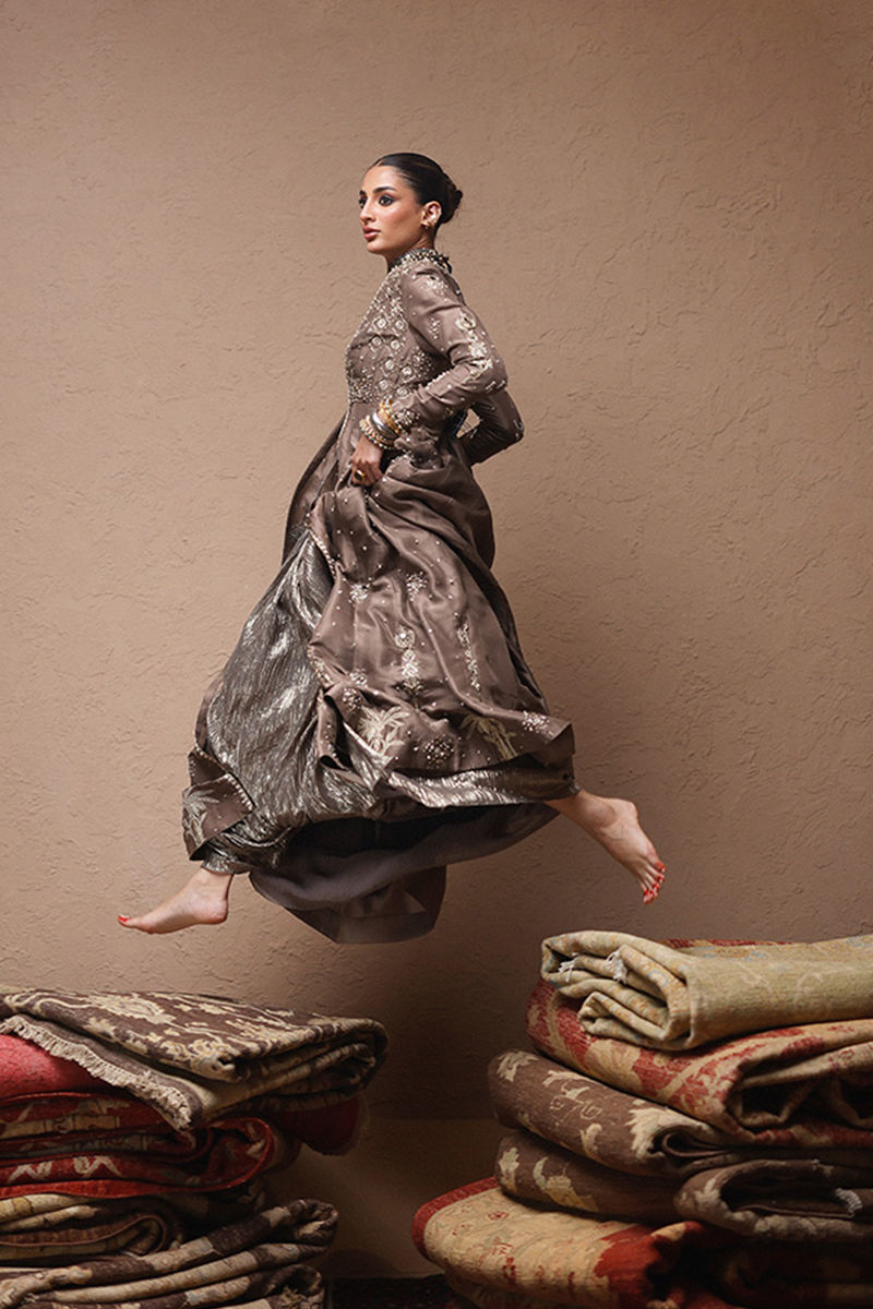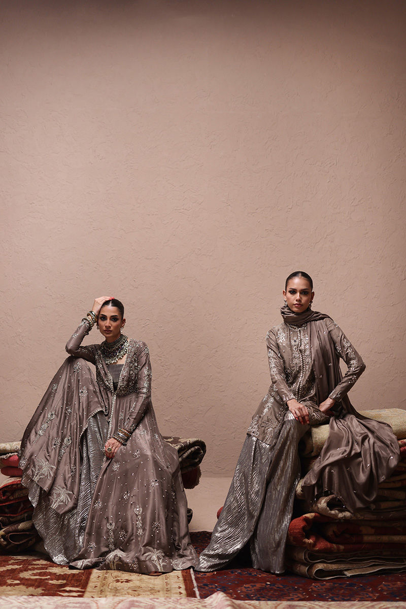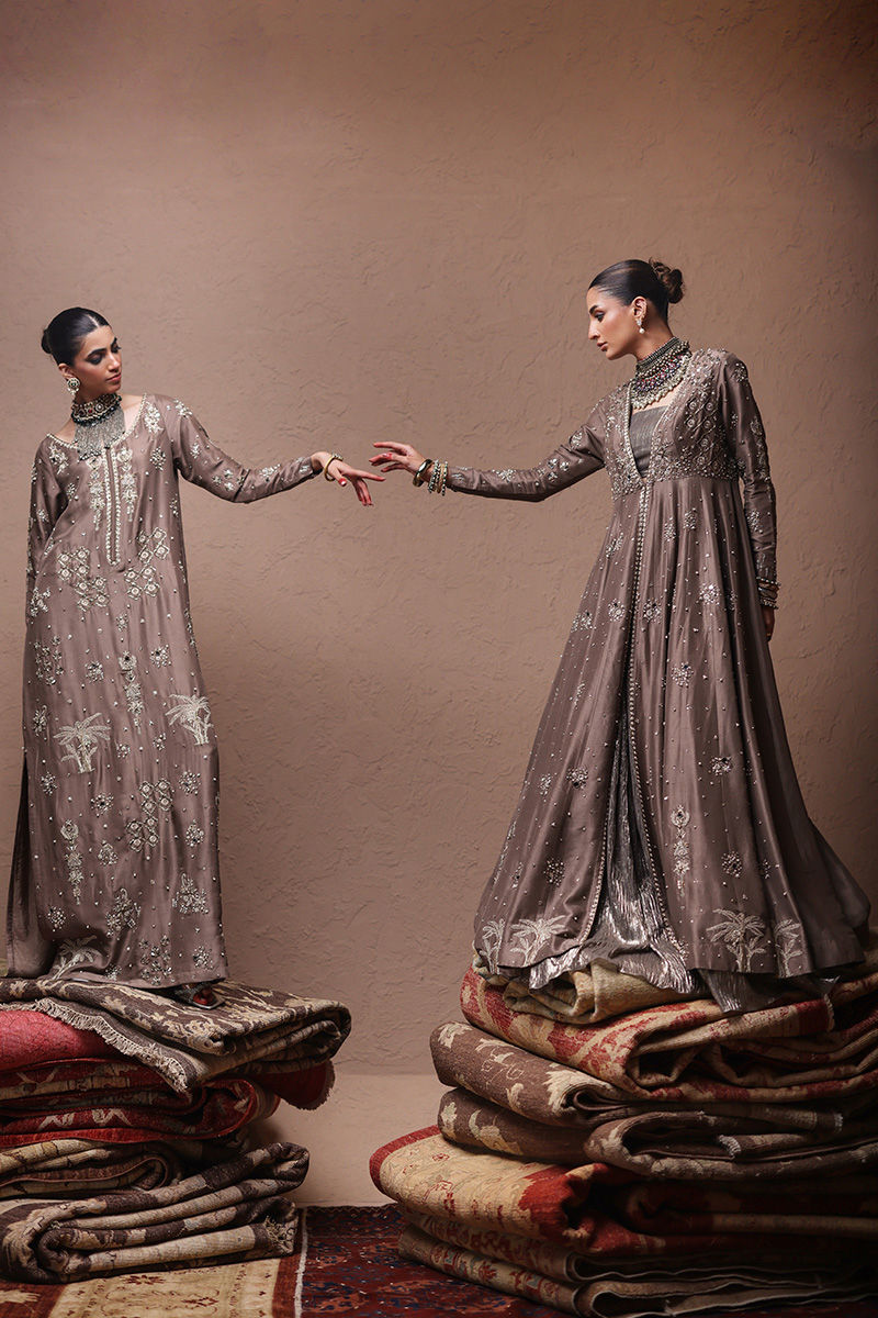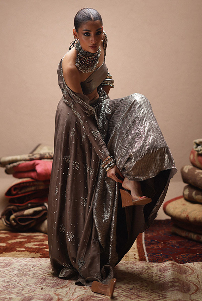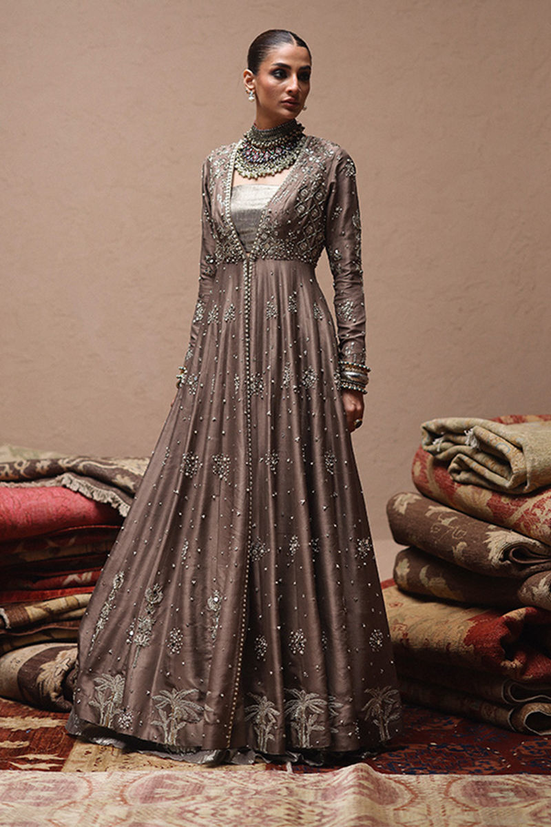 Color: Rockridge Fabric: Pure Raw Silk Work Details: Embellished and Embroidered