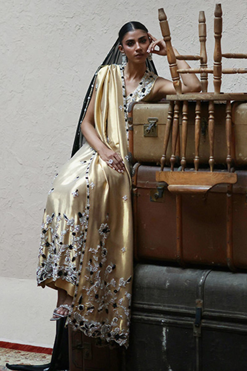 Color: Rich Gold Fabric: Lame Work Details: Embellished and Embroidered