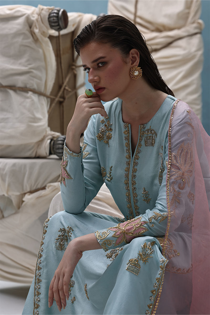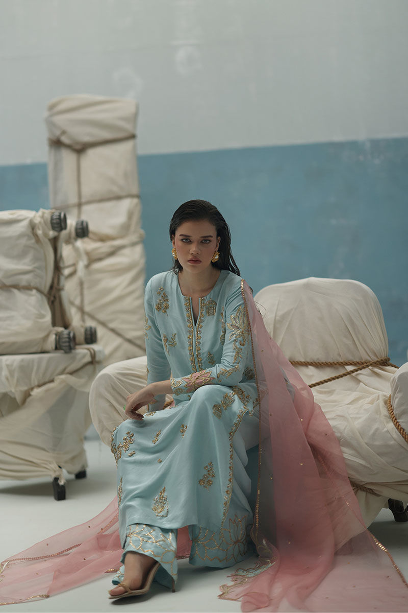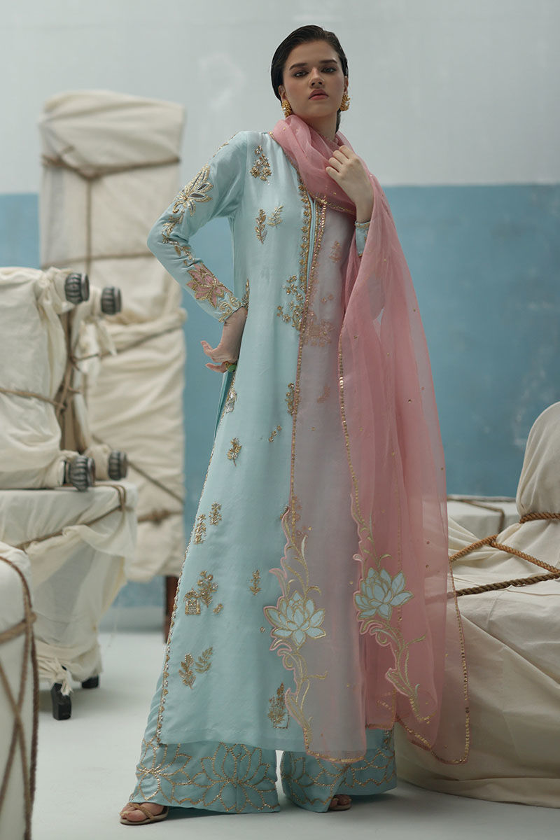 Color: Shirt: Dusty Aqua, Dupatta: Blush Pink