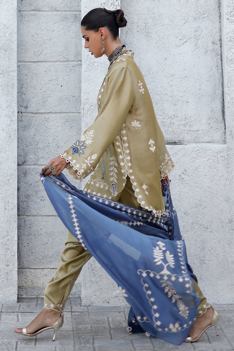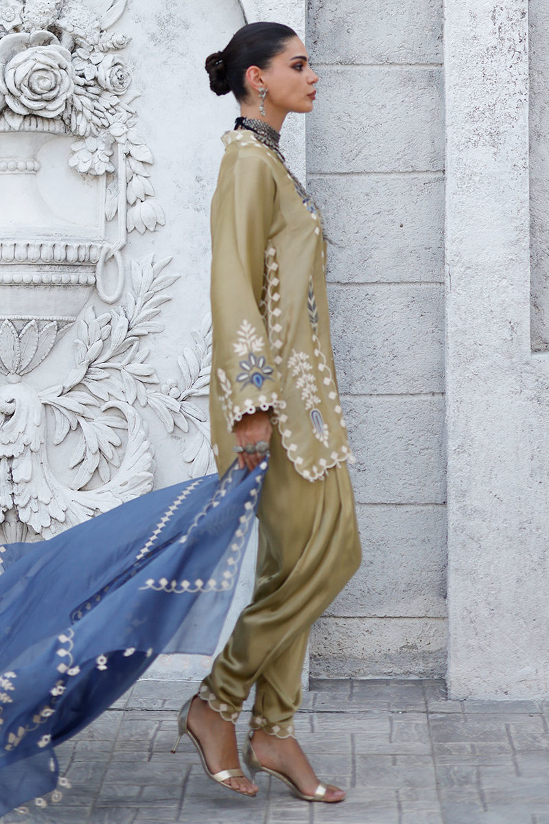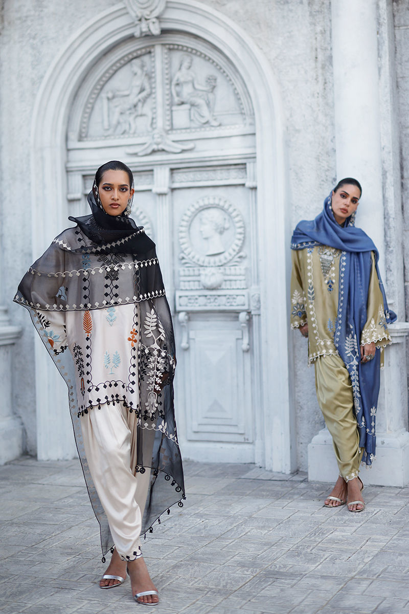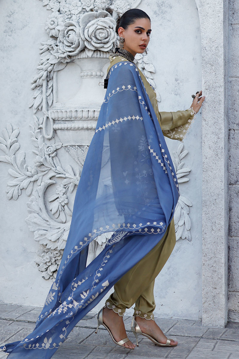 Fabric: Shirt: Butter Silk, Khadi Shalwar: Cotton Charmeuse, Dupatta: Shisha Organza