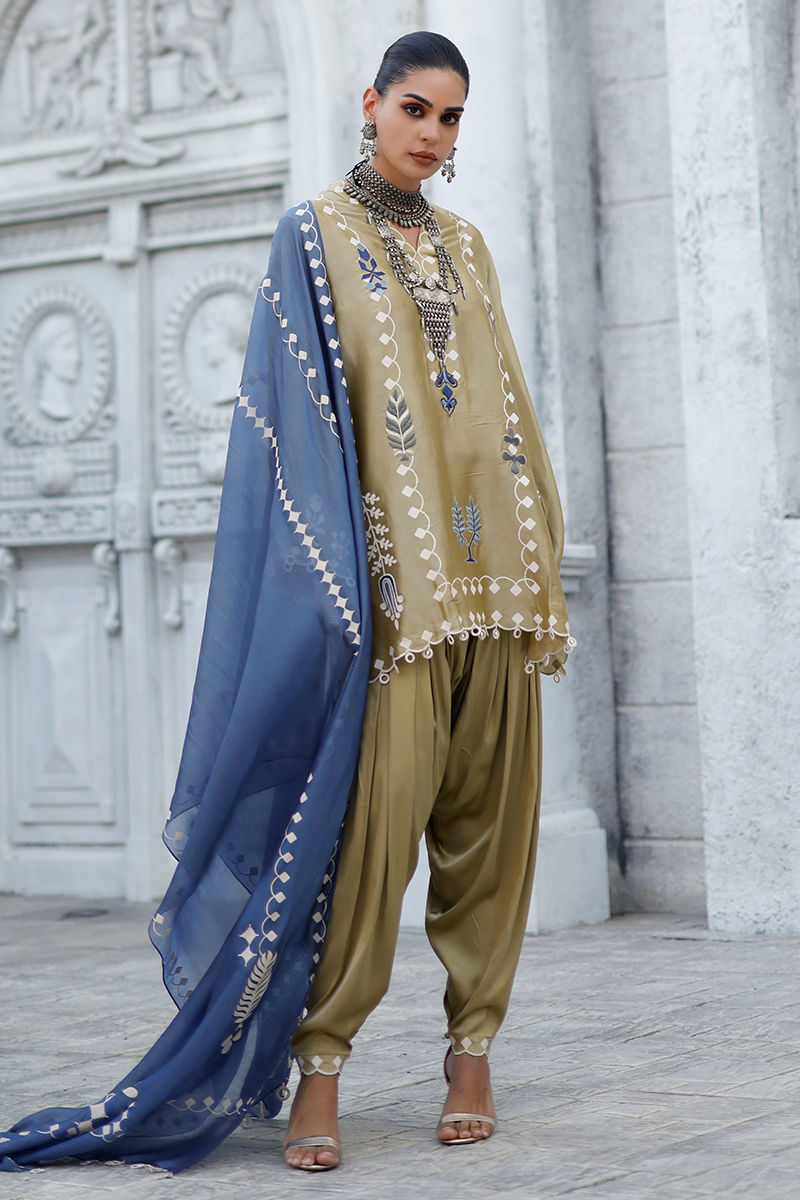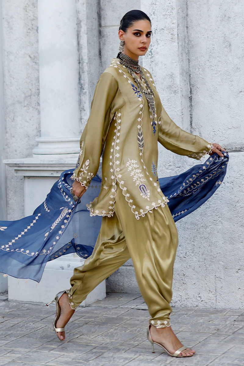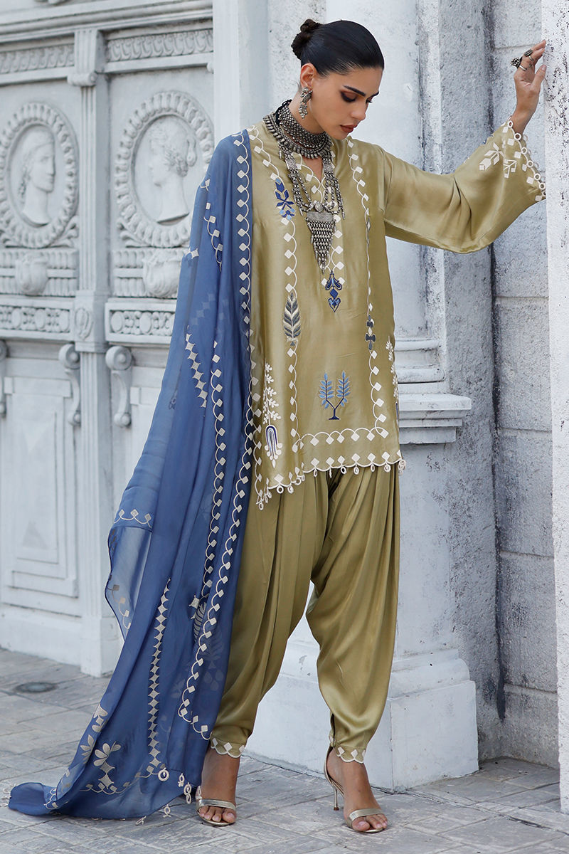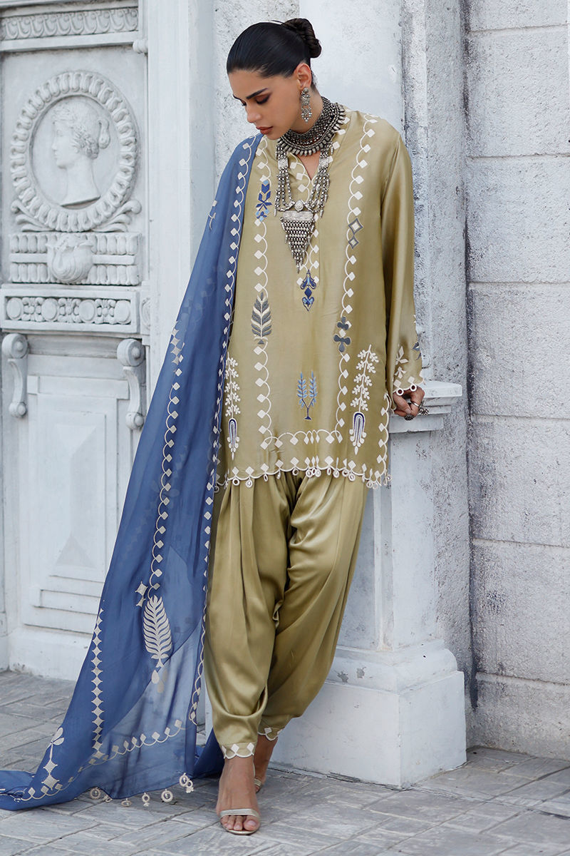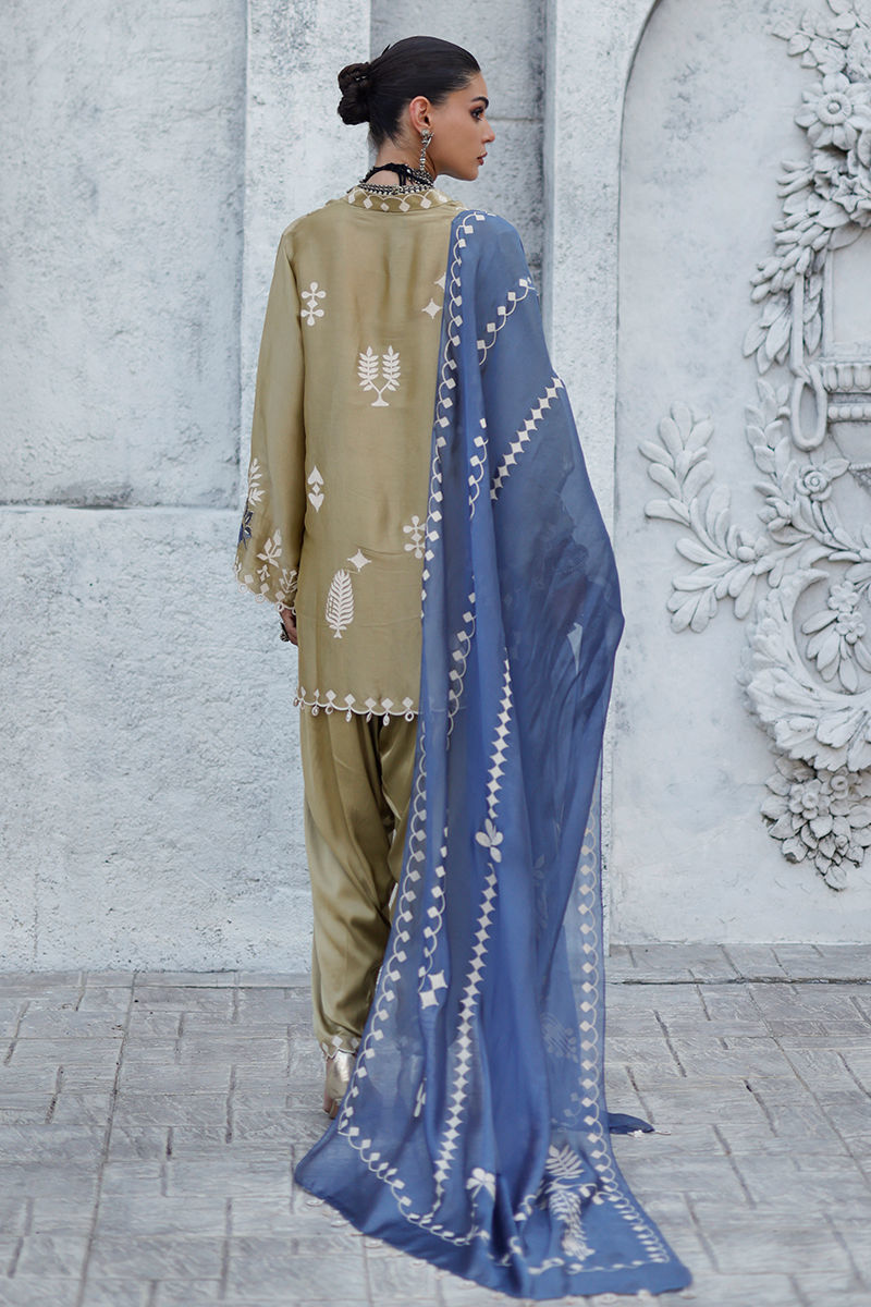 Fabric: Shirt: Butter Silk, Khadi Shalwar: Cotton Charmeuse, Dupatta: Shisha Organza