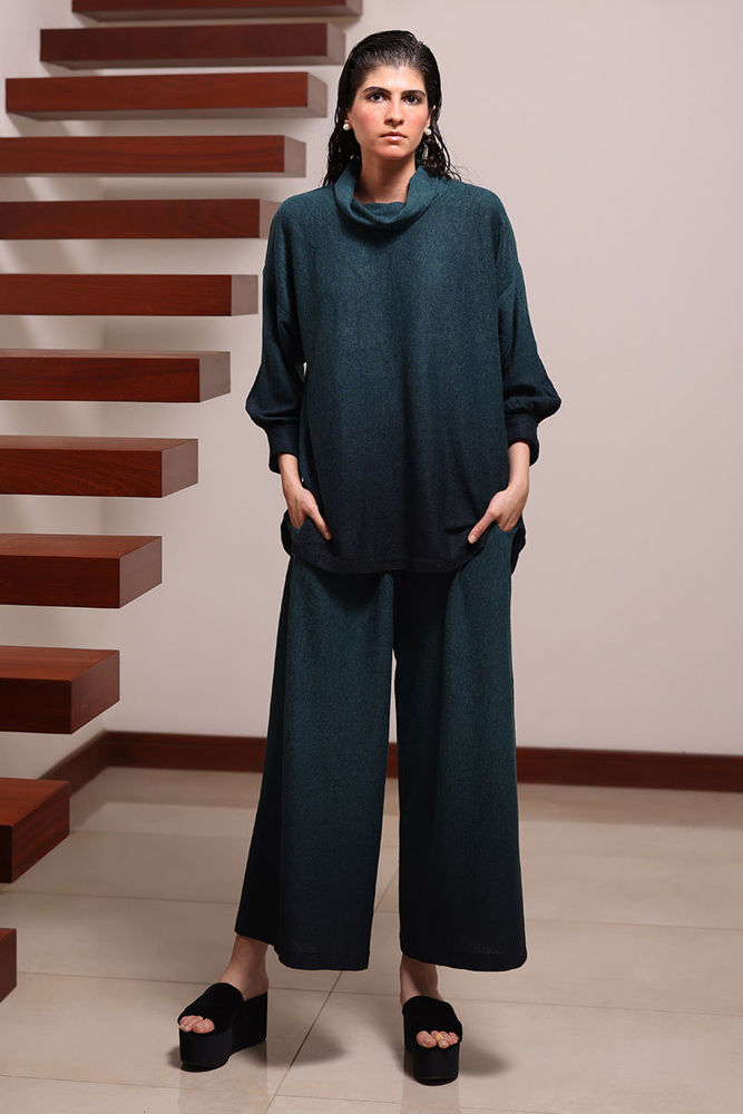 This jasper green ombre design that transitions from deep green to lighter hues, adding a mesmerizing and dynamic element to your look. Embrace the cozy allure of knitwear and step out with confidence in this versatile ensemble that's perfect for embracing any day with style. The loose culottes offer a relaxed fit, allowing for ease and a touch of laid-back elegance.